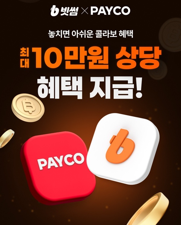 [서울타임즈뉴스 = 최남주 기자] 빗썸이 간편결제 플랫폼 NHN페이코와 제휴해 신규 회원을 대상으로 최대 10만 원 상당의 혜택을 제공하는 공동 프로모션을 진행한다. 이번 프로모션은 오는 12월 31일까지 진행된다. 이번 프로모션은 페이코 앱을 통해 빗썸에 신규 가입하는 고객이라면 누구나 참여할 수 있다.