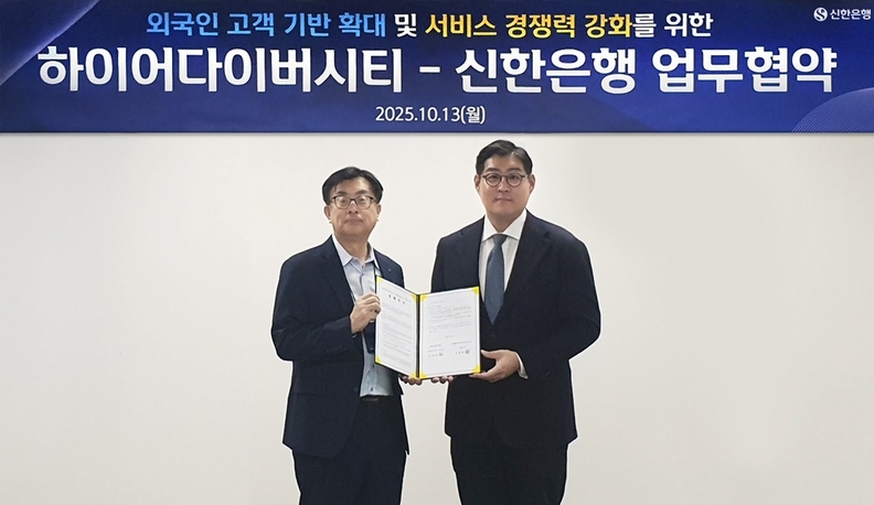 [서울타임즈뉴스 = 최남주 기자] 신한은행(은행장 정상혁)은 13일 외국인 유학생 전용 플랫폼 기업인 하이어다이버시티와 외국인 고객 금융서비스 강화를 위한 업무협약을 체결했다고 14일 밝혔다.