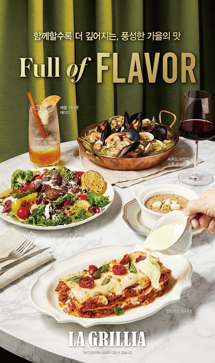 [서울타임즈뉴스 = 서연옥 기자] SPC 그룹 라그릴리아가 깊어가는 가을의 정취를 담은 시즌 한정 메뉴 6종을 선보였다. ‘함께할수록 더 깊어지는, 풍성한 가을의 맛(Full of FLAVOR)’을 테마로 라그릴리아만의 특별한 레시피를 더해 다양한 식재료의 깊은 맛을 살린 것이 특징이다.