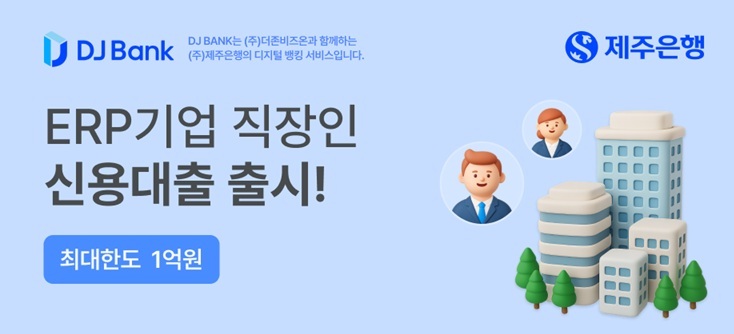 [서울타임즈뉴스 = 최남주 기자] 제주은행(은행장 이희수)은 24일 더존비즈온의 ERP(전사적 자원관리) 데이터를 금융 서비스와 연계한 디지털 브랜드인 ‘DJ BANK’의 첫 상품으로 ‘ERP 기업 직장인 신용대출’을 출시한다고 22일 밝혔다.