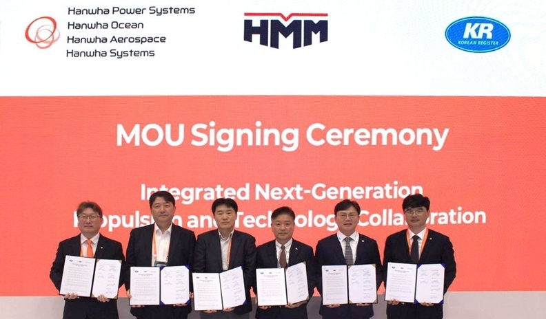 [서울타임즈뉴스 = 최남주 기자] HMM(대표이사 최원혁)은 한화파워시스템, 한화오션, 한화에어로스페이스, 한화시스템 등 한화그룹 4개 계열사, KR(한국선급) 등과 ‘차세대 무탄소 추진 체계 공동개발 위한 기술협력 MOU’를 체결했다고 23일 밝혔다.