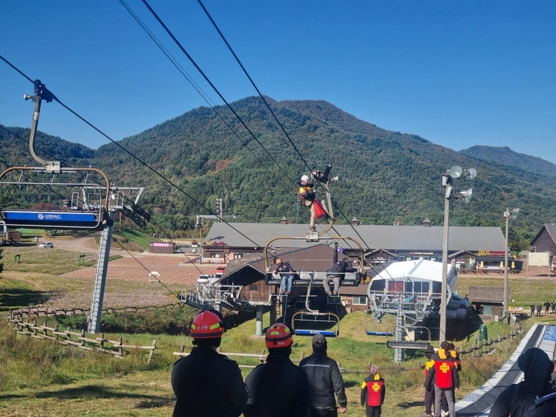 훈련은 리프트 운행 중 예기치 않은 사고로 인해 탑승객이 고립되는 상황을 가정하여 진행됐다. 참가자들은 ▲상황 발생 전파 및 초기 대응 ▲무주소방서와의 긴밀한 협력 체계 구축 ▲장대식, 롤러식 등의 전문 장비를 활용한 고립된 탑승객의 안전하고 신속한 하강 구조 등 인명구조 전 과정에 걸쳐 숙련도를 점검하고, 현장 대응 능력을 향상시켰다.
