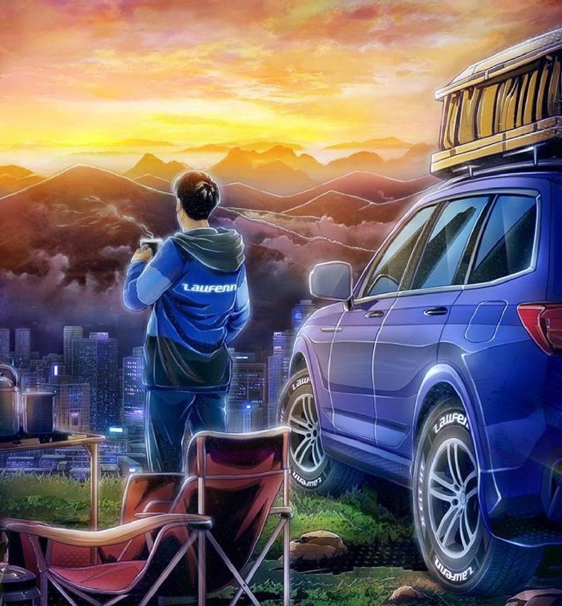 이번 작품은 SUV 전용 타이어 ‘엑스 핏 HT(X FIT HT)’를 소재로, ‘Journey in Style’이라는 핵심 메시지를 전달한다. 도심이 내려다보이는 자연 속 캠핑 장면을 배경으로, 일상 주행부터 캠핑까지 승차감과 내구성 모두를 겸비해 운전자의 편안한 운전 경험과 라이프스타일을 지원하는 제품 특성을 감각적으로 묘사했다.