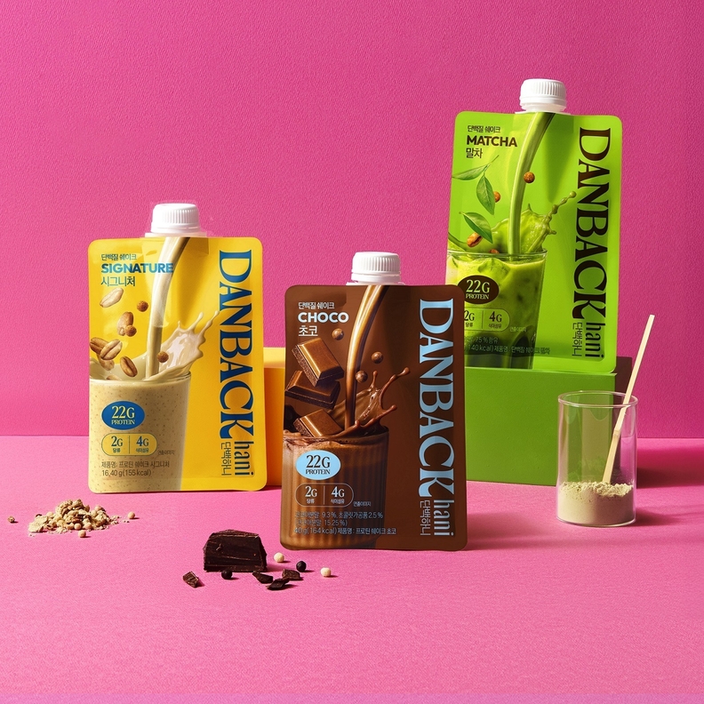 ‘단백하니 단백질쉐이크’는 통곡물 파로를 넣어 고소하고 바삭한 식감을 더한 것이 특징이다. 동물성과 식물성 단백질을 최적의 비율로 조합해 한 팩당 단백질 22g을 섭취할 수 있다. 반면, 당류는 한 팩당 2g으로 낮췄다. 통곡물 6곡 분말을 담아 고소한 ‘시그니처’와 진하고 달콤한 초코우유 맛의 ‘초코’, 최근 열풍인 ‘말차’ 등 세 가지 맛을 취향에 따라 선택할 수 있으며, 파우치 형태로 언제 어디서든 간편하게 즐길 수 있다.