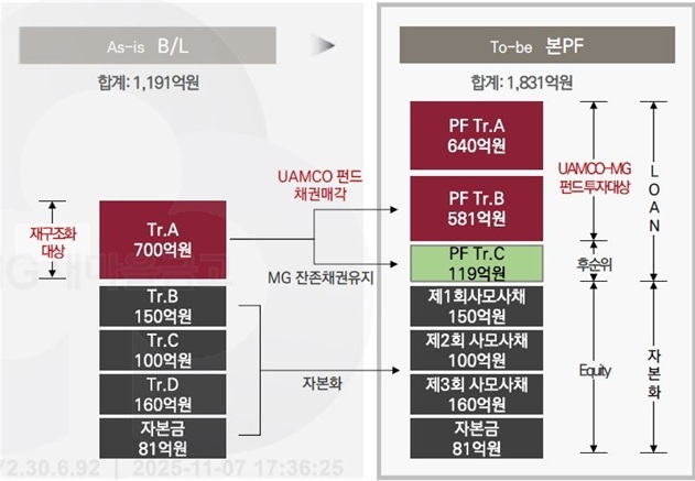 이번 재구조화를 통해 부실 우려가 컸던 새마을금고의 기존 대출채권 중 581억 원이 전액 회수됐다. 나머지 119억 원은 후순위 대출 형태로 유지됐다. 특히 재구조화 과정에서 브릿지론보다 후순위에 있었던 기존 대출을 자본으로 전환해 사업성 개선을 유도한 점이 눈에 띈다.