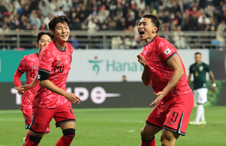 [서울타임즈뉴스 = 허성미 기자] 한국축구팀이 볼리비아를 2대 0으로 꺾었다. 14일 연합뉴스에 따르면 홍명보 감독이 이끄는 한국 축구대표팀이 ‘캡틴’ 손흥민(LAFC)의 환상적인 프리킥 골과 조규성(미트윌란)의 복귀골을 앞세워 남미의 복병 볼리비아를 2-0으로 꺾었다. 대표팀은 14일 대전월드컵경기장에서 열린 평가전에서 후반 12분 손흥민의 선제골, 후반 43분 조규성의 추가골로 승리를 거두며 지난 파라과이전(2-0 승)에 이어 두경기 연속 무실점 승리를 기록했다.