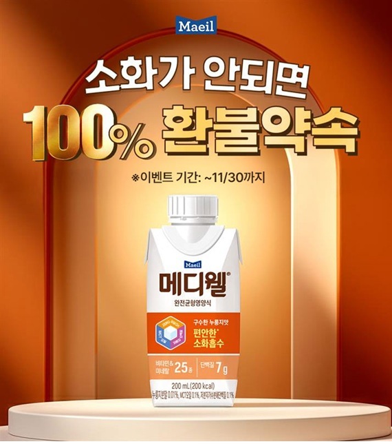 매일유업 메디웰 관계자는 “이번 환불보장 프로모션은 제품의 뛰어난 소화 설계에 대한 자신감을 보여주는 것”이라며 “많은 소비자들이 직접 체험해 편안하고 균형 잡힌 영양을 경험하길 바란다”고 말했다. 한편, 메디웰은 50년 기술력 기반의 균형영양식 브랜드로, 현재 전국 1,000여개 병원 및 전문기관에 공급되고 있다.