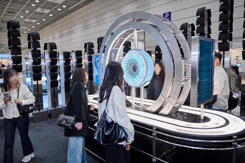 한국타이어는 100% 지속가능 소재와 3D 프린팅 기술을 결합한 ‘지속가능성 콘셉트 타이어’를 국내 최초로 공개했다. 미래 친환경 타이어 기술과 디자인 방향성을 구현한 이번 콘셉트 제품은 높은 관심을 받으며 관람객들의 주목을 끌었다.