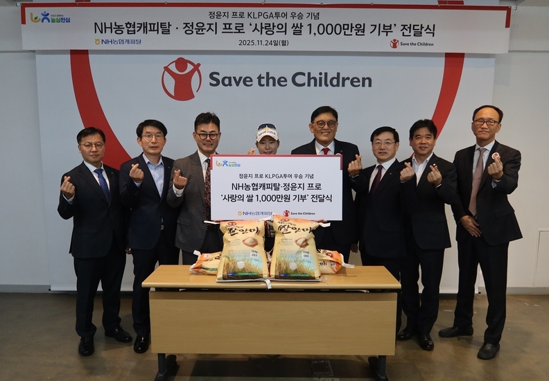 [서울타임즈뉴스 = 최남주 기자] NH농협캐피탈(대표이사 장종환)은 KLPGA 우승을 차지한 정윤지 프로와 함께 우리쌀 1,000만 원 상당을 국제아동권리 NGO 세이브더칠드런에 기부했다고 25일 밝혔다. 이번 기부는 결식 위험에 놓인 국내 아동들에게 따뜻한 한 끼를 전하기 위해 마련된 것이다.