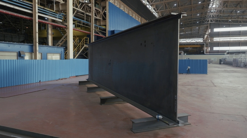 디-메가빔은 지난 4월 첫 생산된 맞춤형 용접형강으로, 이탈리아 코림펙스의 최신 설비를 활용해 후판을 원하는 규격대로 용접해 제작된다. 최소 150mm×300mm부터 최대 3,000mm×1,250mm까지 국내 유일 수준의 초대형 생산이 가능해 데이터센터, 플랜트, 물류센터 등 초대형 구조물 수요에 특화되어 있다. 기존 압연 H형강 대비 설계 자유도가 높고 공간 활용성이 뛰어나 최근 건축 트렌드에 부합한다.