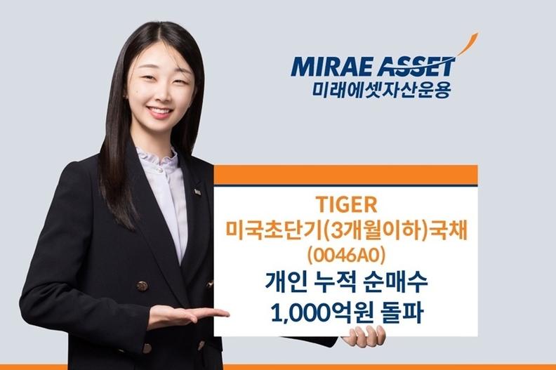 [서울타임즈뉴스 = 최남주 기자] 미래에셋자산운용은 ‘TIGER 미국초단기(3개월이하)국채 ET’가 개인 누적 순매수 1,000억원을 넘어섰다고 10일 밝혔다. 한국거래소에 따르면 9일 종가 기준 개인 누적 순매수 규모는 1,309억 원이다. 이달 들어서만 7영업일간 200억원 넘는 개인 자금이 유입됐다. 이는 올해 국내 상장된 미국 채권형 ETF 가운데 가장 빠른 증가세다.
