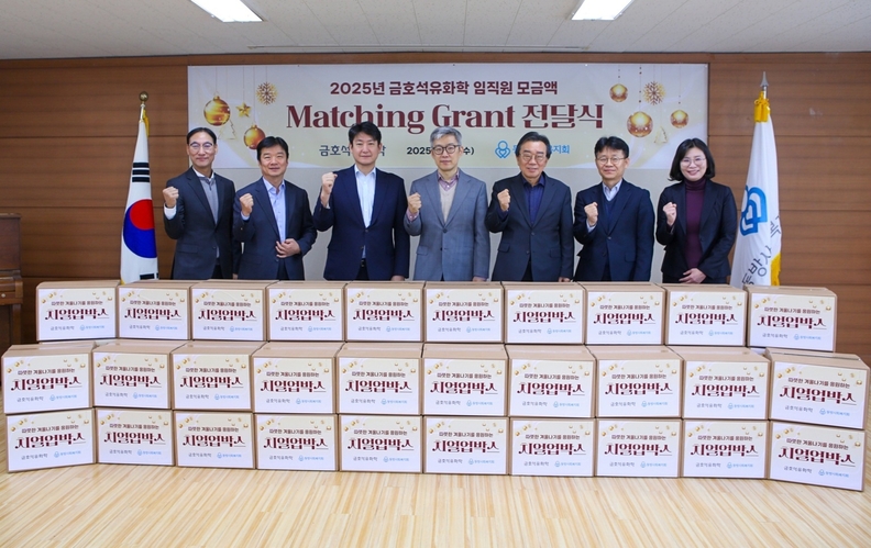 이날 전달식에는 박준경 금호석유화학 총괄사장과 백종훈 대표이사를 비롯한 임직원들이 참석했다. 참석자들은 성금 전달 이후 생필품으로 구성된 응원 박스를 함께 제작하며 연말 나눔의 의미를 되새겼다.