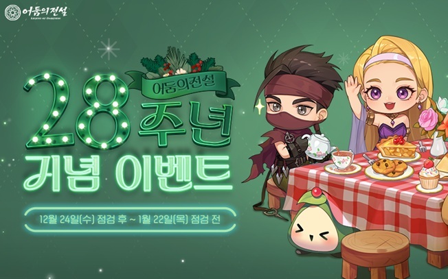 이용자는 각종 이벤트를 통해 획득한 ‘크리스마스 씰’을 등록하면 ‘에테르’, ‘루돌이’ 등 다양한 보상을 받을 수 있다. 이와 함께 ‘눈사람 만들기’, ‘거대 눈사람 퇴치’, ‘성냥팔이소녀 돕기’ 이벤트를 통해 ‘요정의선물상자’ 등 크리스마스와 28주년 기념 아이템을 제공한다.