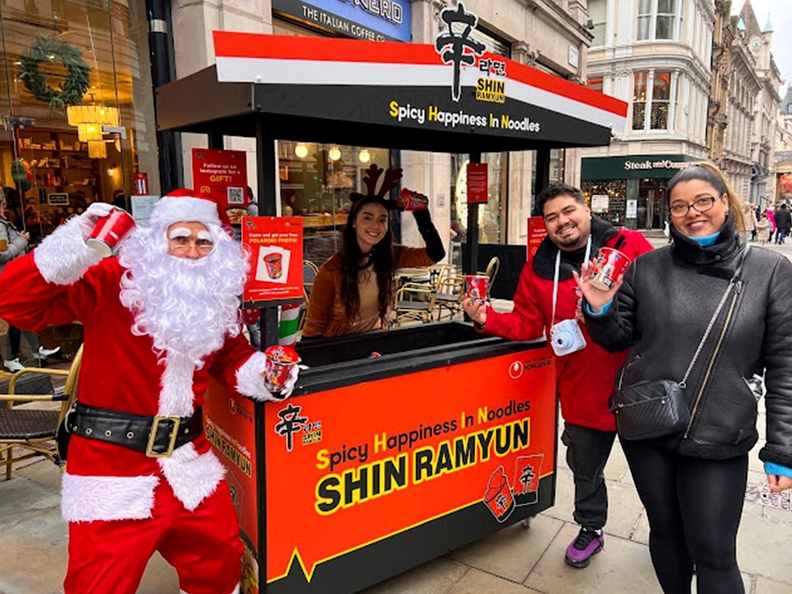 현장 체험형 프로모션도 함께 운영된다. 농심은 ‘신라면 카트’를 통해 SNS 팔로우 이벤트를 진행하고, ‘케이팝 데몬 헌터스’ 캐릭터가 적용된 신라면컵을 증정한다. 또한 피카딜리 서커스를 배경으로 신라면과 함께 사진을 남길 수 있는 폴라로이드 촬영 이벤트를 마련해 크리스마스 시즌을 맞은 런던 시민과 관광객에게 즐거운 브랜드 경험을 제공하고 있다.