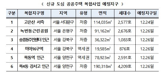 [서울타임즈뉴스 = 서연옥 기자] 한국토지주택공사(LH)는 서울 목동역 인근을 포함한 서울 6곳이 도심 공공주택 복합사업 예정지구로 지정·공고됐다고 26일 밝혔다. 이번 지정으로 해당 지역에는 총 1만4012가구 규모의 공공주택 공급이 추진된다.