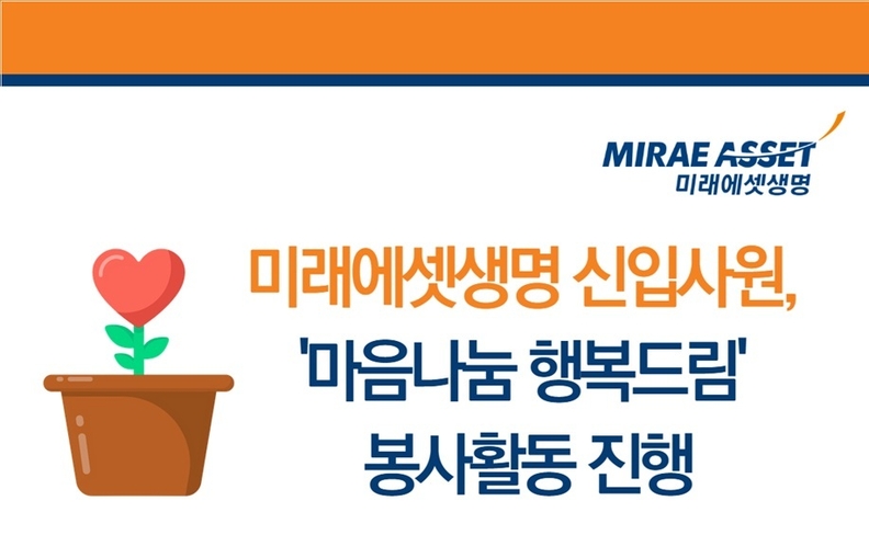 봉사자들은 어르신과 2인 1조로 짝을 이뤄 다육복조리를 만드는 원예 프로그램을 진행하며 따뜻한 교감을 나눴다. 한 신입사원은 “함께 웃고 이야기하며 의미 있는 시간을 보냈다”고 말했다. 한편 미래에셋생명은 미래에셋박현주재단과 연계해 다양한 봉사활동을 지속하고 있다.
