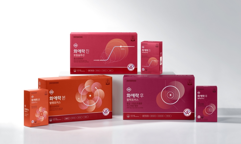 ■정관장, 여성건강 브랜드 ‘화애락’ 3종 리뉴얼=정관장이 여성건강 전문 브랜드 ‘화애락’ 대표 제품 3종을 리뉴얼 출시했다. 새롭게 선보인 제품은 ‘화애락 진 토탈솔루션’, ‘화애락 본 혈행포커스’, ‘화애락 후 활력포커스’다. 갱년기 여성 건강을 중심으로 혈행, 관절·근육 케어까지 기능을 확장했으며, 칼로리를 낮춰 섭취 편의성도 높였다. 정관장은 20년 이상 축적한 여성건강 연구와 특허 원료를 바탕으로 화애락 브랜드 경쟁력을 강화한다는 전략이다.