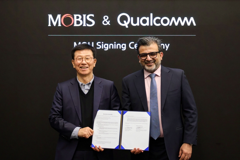 현대모비스는 CES 2026에서 글로벌 반도체 기업 퀄컴과 SDV 및 ADAS 공동개발을 위한 MOU도 체결했다. 양사는 시스템 통합, 센서 퓨전, 영상 인식, 시스템온칩(SoC) 기술을 결합해 통합 ADAS 솔루션을 개발하고, SDV 확장형 소프트웨어 플랫폼 구축에 협력한다. 현대모비스의 제어기·소프트웨어에 퀄컴의 애플리케이션 프로세서를 적용해 성능과 효율성, 안정성을 동시에 높인다는 전략이다.