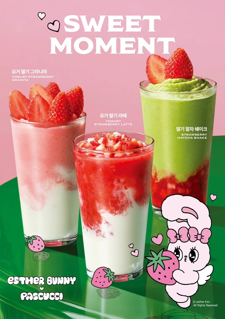 [서울타임즈뉴스 = 서연옥 기자] SPC그룹이 운영하는 이탈리아 정통 카페 브랜드 파스쿠찌가 ‘에스더버니와 함께하는 달콤한 순간(Sweet Moment with Esther Bunny)’을 주제로 딸기 시즌 캠페인을 진행하며 딸기 음료 2종을 선보인다.