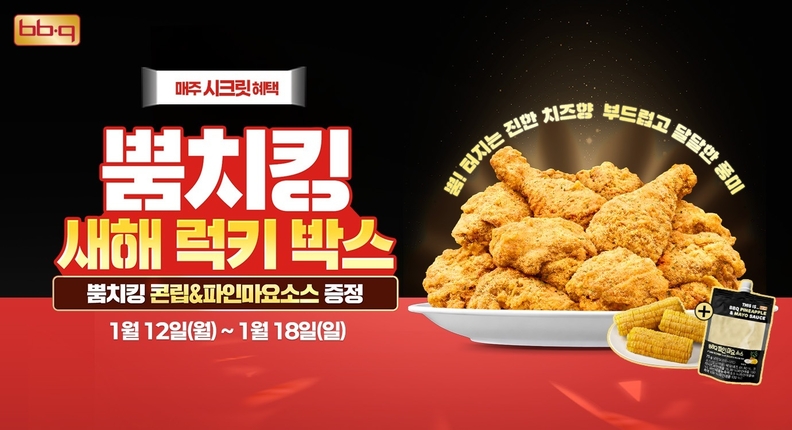 [서울타임즈뉴스 = 서연옥 기자] 국내 최대 치킨 프랜차이즈 제너시스BBQ 그룹(회장 윤홍근)은 오는 18일까지 BBQ앱(자사앱) 및 웹사이트를 통해 뿜치킹을 주문한 고객에게 ‘뿜치킹 콘립’과 ‘파인마요소스’를 증정하는 ‘뿜치킹 새해 럭키 박스 2차 캠페인’을 진행한다고 밝혔다.