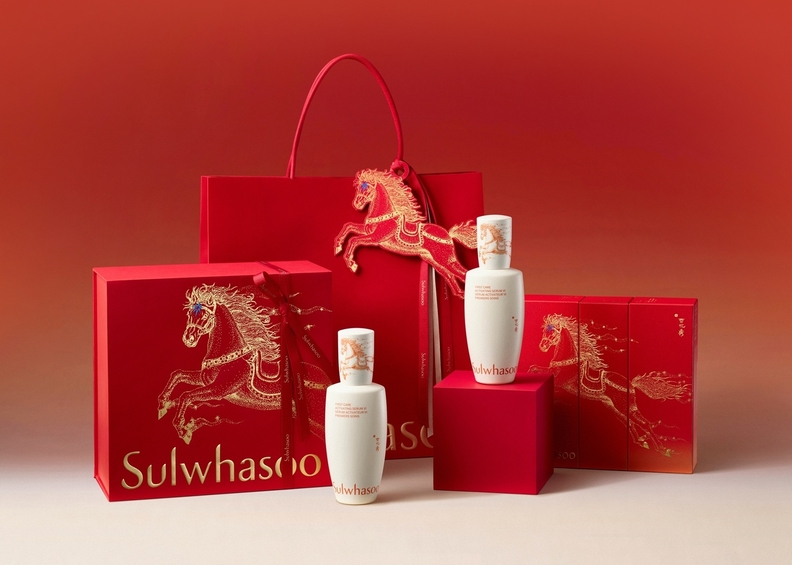 ■설화수, ‘붉은 말의 해’ 윤조에센스=설화수가 2026년 ‘붉은 말의 해’를 기념해 윤조에센스 한정판을 선보였다. 신라시대 천마도에서 영감을 받은 디자인으로, 어둠을 뚫고 달리는 백마의 역동성을 현대적으로 재해석했다. 불꽃처럼 흩날리는 갈기와 별빛 요소는 도전과 희망, 진취적인 새해의 메시지를 담았다. 말 머리 위 푸른 별과 안장의 매화 문양은 설화수의 브랜드 상징과 연결된다.