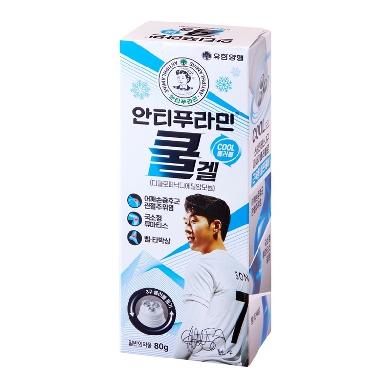 빠르게 흡수되는 산뜻한 젤 제형으로 끈적임이 적다. 운동 후 근육 피로와 뭉침을 완화하는 데 적합하다. 휴대성이 뛰어나고, 파스 특유의 냄새도 줄였다. 안티푸라민은 1933년 유한양행이 자체 개발한 1호 의약품이다. 안티푸라민은 현재 10여종의 제형 라인업을 갖추고 있다.