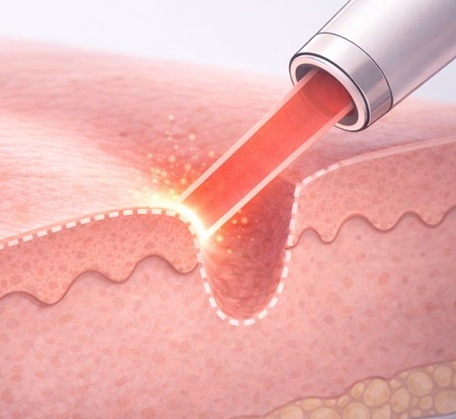 CPG조각술은 울트라펄스앙코르 레이저를 이용해 각지고 깊은 흉터의 테두리를 정밀하게 허물어 준다. 흉터 바닥을 뚝 떨어진 단면에서 완만한 곡선으로 바꿔, 재생이 쉬운 구조를 만드는 것이 핵심이다. 반면 어븀조각술은 보다 부드러운 접근법이다. 흉터 경계를 가볍게 눌러 일시적으로 둥글게 만들어, 이후 레이저 단계에서 에너지가 효율적으로 전달되도록 돕는다.