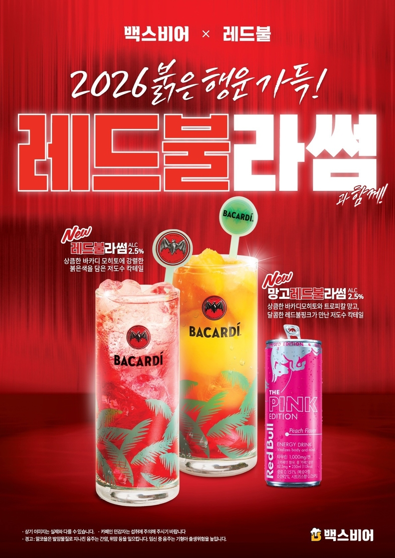 백스비어 관계자는 “2026년 붉은 말의 해를 맞아 도전과 에너지를 대표하는 ‘레드불’과의 협업을 통해 고객분들의 활기찬 새해를 응원하고자 칵테일 2종을 선보이게 됐다”며, “백스비어만의 캐주얼한 분위기 속에서 가볍고 맛있게 즐길 수 있는 칵테일로 친구·연인·지인들과 행복한 추억 남기길 바란다”고 전했다.