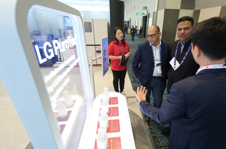 유리 파우더 형태의 퓨로텍은 플라스틱·페인트·고무 등에 소량만 첨가해도 미생물로 인한 악취와 오염을 억제하는 항균·항곰팡이 기능을 제공한다. LG전자는 이번 전시에서 세탁기·냉장고·에어컨·청소기·정수기 등 가전은 물론 건축자재, 위생용품, 식품 포장, 의료 장비까지 생활 밀착형 전반에 적용 가능한 솔루션을 소개했다. 전면에는 총 5개 퓨로텍 라인업을 배치하고, B2B 고객을 위한 맞춤형 상담 공간도 운영했다.
