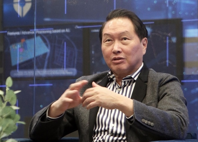 특히 최 회장은 지난 5일(현지시간) 캘리포니아 산타클라라의 한국식 호프집에서 황 CEO와 만나 AI 산업의 중장기 방향에 대해 의견을 교환했다. 이 자리에서 SK하이닉스가 반도체를 콘셉트로 제작한 ‘HBM 칩스’와 성장 스토리를 담은 서적 ‘슈퍼 모멘텀’을 전달하며 파트너십을 재확인했다.