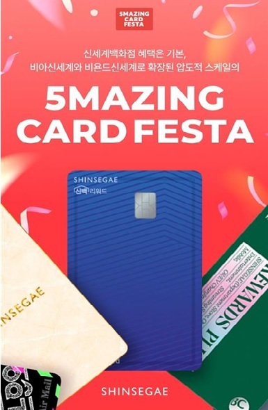 ‘5메이징 카드 페스타’는 업계 최다인 5개 제휴카드사가 참여하는 신세계백화점의 대표 사은행사다. 행사 기간 동안 명품·패션·잡화 단일 브랜드에서 제휴카드로 결제 시 구매 금액에 따라 최대 7%를 신백리워드로 돌려준다.