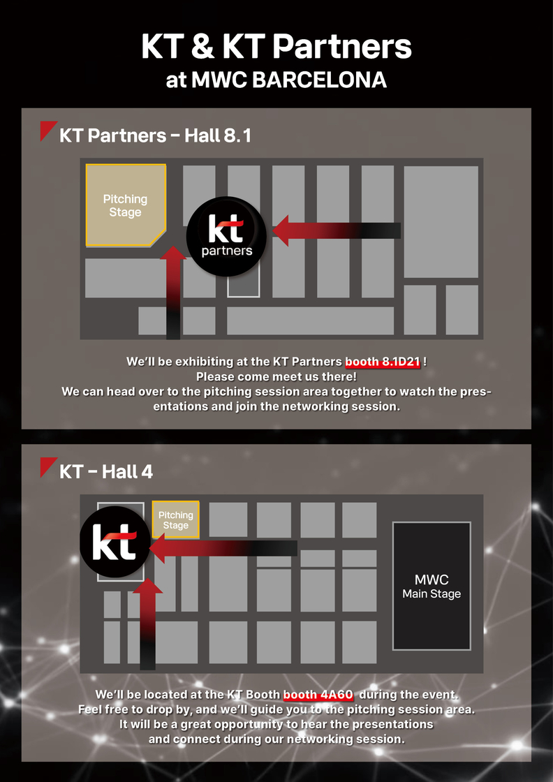 KT는 3월 2일부터 5일까지 열리는 MWC26에서 피라 그란비아 내 스타트업 전시관 ‘4YFN(4 Years From Now)’ 8.1홀에 단독 부스를 마련한다. 4YFN은 글로벌 통신사와 벤처캐피털(VC), 전략적 투자자 방문이 집중되는 공간으로, 스타트업의 투자 유치와 사업 협력이 활발히 이뤄지는 구역이다.