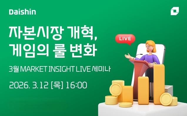 이번 세미나는 대신증권 리서치센터 이경연 연구원이 연사로 나서 상법 개정안을 포함한 자본시장 제도 개편 방향과 최근 정책 변화가 국내 증시에 미치는 영향을 설명할 예정이다. 세미나는 대신증권 유튜브 ‘대신 TV’에서 진행되며 사전 신청자에게는 접속 링크가 제공된다.