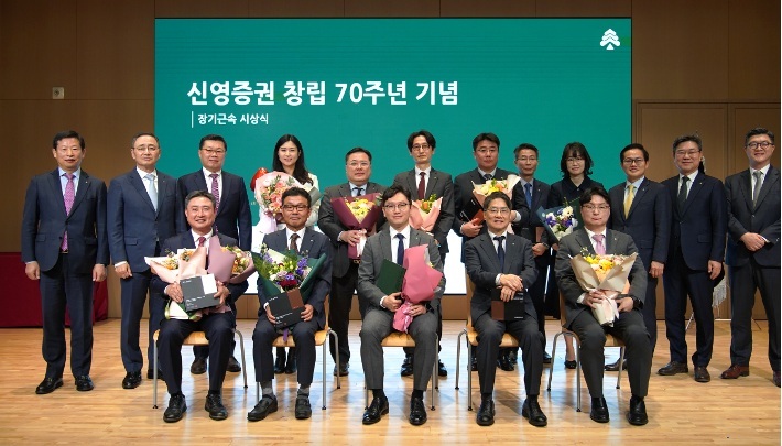 신영증권 측은 지난 70년간 축적한 원칙과 신뢰를 토대로 앞으로도 정도 경영을 이어가겠다는 의지를 담았다고 설명했다. 기념식은 별도 외부 행사 없이 임직원이 함께 회사의 역사와 미래 비전을 공유하는 자리로 진행됐다. 장기근속 직원 표창과 함께 한 해 동안 우수한 성과를 낸 부서와 직원에게 수여하는 ‘자랑스런 신영인상’ 시상도 이어졌다.