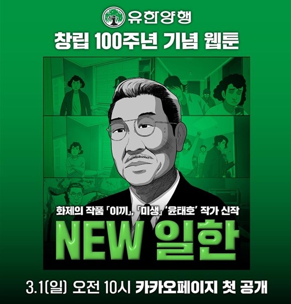 [서울타임즈뉴스 = 최남주 기자] 유한양행이 창립 100주년을 맞아 창업자 유일한 박사의 삶과 정신을 조명한 창작 웹툰 'NEW 일한'을 오는 3월 1일 오전 10시 카카오페이지를 통해 첫 공개한다. 윤태호 작가와 협업한 웹툰 'NEW 일한'은 총 8화 분량이다. 이 웹툰은 오는 3월 1일부터 매주 일요일 카카오페이지를 통해 연재될 예정이다.
