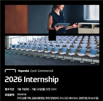 [서울타임즈뉴스 = 최남주 기자] 현대카드와 현대커머셜이 ‘2026 인턴십’을 진행한다고 3일 밝혔다. ‘현대카드·현대커머셜 인턴십(이하 인턴십)’은 현대카드·현대커머셜이 신입 인재 모집을 위해 진행하는 채용 연계형 인턴십 프로그램이다.