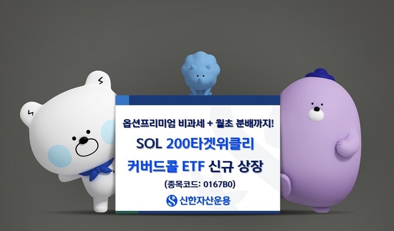 [서울타임즈뉴스 = 최남주 기자] 신한자산운용은 코스피200 지수를 기초자산으로 활용해 옵션 프리미엄과 배당수익을 기반으로 월분배를 추구하는 ‘SOL 200타겟위클리커버드콜 ETF’를 17일 신규 상장한다.이 상품은 코스피200에 투자하는 동시에 주 단위로 국내 위클리 콜옵션을 매도해 연 15% 수준의 옵션 프리미엄 수익을 목표로 하는 타겟 커버드콜 전략 ETF다.