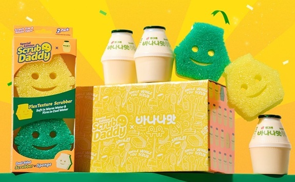 ■빙그레, 바나나맛우유-스크럽 대디 콜라보레이션 굿즈=빙그레가 글로벌 청소용품 브랜드 ‘스크럽 대디’와 협업한 바나나맛우유 콜라보레이션 굿즈를 출시한다. 이번 협업을 통해 바나나맛우유의 단지 모양을 활용한 수세미 2종을 선보인다. 수세미는 ‘대디’와 ‘마미’ 2가지로 구성된다. 물 온도에 따라 수세미 경도가 변하는 플렉스텍스처를 적용됐다.