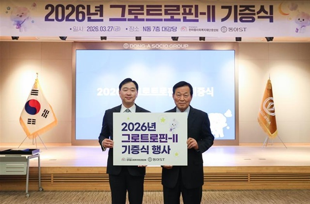 [서울타임즈뉴스 = 최남주 기자] 동아에스티가 저신장증 어린이 치료 지원을 확대하며 사회공헌 활동을 이어간다. 동아에스티는 27일 서울 동대문구 용두동 본사에서 ‘2026년 성장호르몬제 기증식’을 개최하고, 저신장증 어린이 157명에게 약 10억 원 규모의 성장호르몬제 ‘그로트로핀’을 지원하기로 했다.