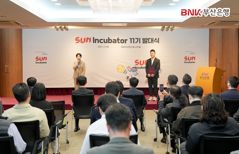■BNK부산은행, ‘썸 인큐베이터 11기’ 출범=BNK부산은행이 스타트업 육성 프로그램 ‘썸 인큐베이터 11기’를 출범하며 지역 혁신기업 지원을 강화한다. 이번 기수에는 약 7대1 경쟁률을 뚫은 33개 기업이 선발됐다. 발대식에서는 선정증서 전달과 기업 발표 등이 진행됐다. 참가 기업에는 사무공간 제공, 맞춤형 교육, AI 기반 멘토링, 투자 IR 기회 등 다양한 지원이 제공된다. 부산은행은 스타트업의 성장 단계별 지원을 통해 지역 산업 생태계 활성화와 신사업 발굴을 동시에 추진한다는 계획이다.