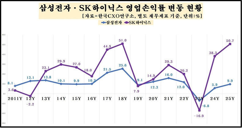매출 규모에서는 삼성전자가 여전히 우위를 보였지만, 영업이익률에서는 SK하이닉스가 크게 앞섰다. 매출 규모보다 수익성이 기업 경쟁력을 좌우하는 흐름이 강화되고 있음을 보여주는 대목이다. 당기순이익 부문에서도 변화가 나타났다.