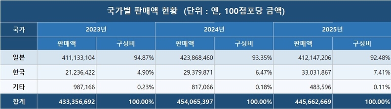 시장 구조는 일본 제품 중심이지만 변화의 방향은 분명하다. 슈퍼마켓 POS 데이터를 보면 일본산 라면 비중은 2023년 94.87%에서 2025년 92.48%로 낮아졌다. 반면 한국 라면은 같은 기간 4.9%에서 7.41%로 상승하며 점유율을 꾸준히 확대했다. 베트남·태국·인도네시아 등 기타 국가 제품 비중은 감소세를 보이고 있다.