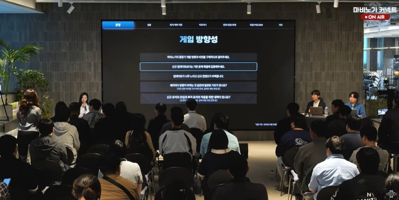 넥슨은 25일 판교 사옥에서 온·오프라인 공개 방송 '마비노기 커넥트'를 개최하고 게임 운영 및 업데이트 방향에 대해 이용자들과 질의응답을 진행했다. 현장에는 사전 신청으로 선정된 75명의 이용자와 마비노기 유저 대표단 5명이 참석했다.