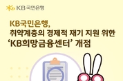 [서울타임즈뉴스 = 최남주 기자] KB국민은행이 취약계층의 경제적 재기를 돕기 위한 전용 상담 창구를 마련했다. KB국민은행은 17일 채무조정과 신용상담 서비스를 제공하는 ‘KB희망금융센터’를 서울과 인천에 개점했다고 18일 밝혔다. 새롭게 문을 연 센터는 영업점 유휴공간을 활용해 상도동지점과 인천 연수중앙지점에 각각 설치됐다. KB국민은행은 우선 두 곳을 운영한 뒤, 내년 상반기 중 전국으로 확대할 계획이다. KB희망금융센터에서는 신용점수와 대출 현황 분석을 통한 맞춤형 신용 컨설팅을 비롯해 은행 자체 채무조정, 신용회복위원회 및 새출발기금, 개인회생·파산 제도 등 다양한 채무구제 방안을 안내한다. 아울러 정책금융상품과 고금리 대출 전환 등 서민금융 지원제도도 함께 제공해 실질적인 금융 부담 완화를 돕는다. KB국민은행은 또 한국EAP협회와 연계해 채무 상담 고객을 대상으로 ‘마음돌봄 상담 서비스’를 운영하고 있다. 전국 심리상담센터를 통해 전문 상담을 제공함으로써 채무자들이 심리적 안정을 되찾고 일상 회복을 할 수 있도록 지원한다. KB국민은행 관계자는 “그동안 축적해온 채무상담 역량과 채무조정 노하우가 KB희망금융센터를 통해 빛을 발하길 기대한다”며,