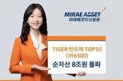 [서울타임즈뉴스 = 최남주 기자] 미래에셋자산운용의 ‘TIGER 반도체TOP10 ETF’ 순자산이 8조원을 넘어섰다. 18일 한국거래소에 따르면 17일 종가 기준 해당 ETF 순자산은 8조 1,543억원이다. 국내 주식 테마형 ETF 가운데 최대 규모다. 지난해 말 2조 8000억원 수준이던 순자산은 약 5조원 증가하며 가파른 성장세를 보였다. 이 같은 성장 배경에는 인공지능(AI) 산업의 구조 변화가 자리하고 있다. AI 수요가 기존 ‘학습’ 중심에서 ‘추론’ 영역으로 확대되면서 고성능 메모리 반도체 수요가 빠르게 증가하고, 관련 투자 수요도 동반 확대되는 흐름이다. 해당 ETF는 삼성전자와 SK하이닉스를 각각 24.8%, 29.6% 비중으로 편입하는 등 국내 대표 반도체 기업 10개 종목에 투자한다. 특히 두 기업 비중이 높은 구조로, 국내 반도체 업황 상승을 직접적으로 반영하는 상품이라는 점이 특징이다. 시장에서는 엔비디아가 ‘GTC 2026’에서 차세대 AI 가속기 ‘베라 루빈’과 추론 전용 칩을 공개할 것으로 예상된다. 이에 따라 핵심 파트너인 삼성전자와 SK하이닉스에 대한 기대감도 커지고 있다. 차세대 고대역폭메모리(HBM4) 탑재 계획이 부각되며