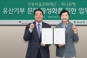 [서울타임즈뉴스 = 최남주 기자] 하나은행(은행장 이호성)은 15일 서울 성북구 간송미술관에서 간송미술문화재단(이사장 전영우)과 유산 기부 활성화 및 문화예술 가치 확산을 위한 업무협약을 체결했다고 17일 밝혔다. 이번 협약은 기부문화 저변 확대 및 정착을 통해 누구나 쉽게 본인의 유산을 사회와 함께 나누고 문화유산 보존 및 문화예술 가치 확산에 기여하기 위해 마련됐다. 하나은행은 손님의 생애주기와 금융 수요에 기반한 맞춤형 신탁 설계를 통해 금융솔루션을 제공하여 정확하고 투명한 사후 기부 활동을 적극 지원한다. 간송미술문화재단은 기부금을 한국 문화유산의 연구ㆍ교육과 보존ㆍ전시 등 문화예술 확산 사업에 활용할 계획이다. 하나은행과 간송미술문화재단은 유산 기부자 및 잠재기부자들의 유입 확대와 마케팅을 확대하고 하나은행 손님을 대상으로 특화된 아트서비스 등을 제공하며 상호협력을 강화키로 했다. 하나은행 관계자는 “이번 협약은 금융과 문화재단이 손잡고 기부문화 생태계를 함께 만들어가는 첫 걸음이라는 점에서 의미가 크다”며 “앞으로도 유언대용신탁과 기부신탁 등을 통해 손님의 유산이 사회적 가치로 확장되고, 지속 가능한 미래를 위한 기부문화 활성화를 위해 노력하겠다”
