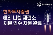 [서울타임즈뉴스 = 최남주 기자] 한화투자증권(대표 장병호)은 해외 니켈 제련소 지분 인수 자문을 성공적으로 완료했다고 7일 밝혔다. 이번 거래는 미국 SpaceX 등 글로벌 우주항공 산업에 특수합금을 공급하는 스피어코퍼레이션이 인도네시아 EN 니켈 제련 프로젝트 지분 10%를 총 2억4000만 달러에 인수하는 건이다. 한화투자증권은 이 가운데 2억1000만 달러를 글로벌 투자자와 연계해 조달하는 금융 구조를 설계하며 인수 전반을 자문했다. ENC 프로젝트는 인도네시아에 위치한 대형 니켈 제련소 기반 사업으로, 이번 투자는 국내 기업이 글로벌 핵심 광물에 대한 전략적 지분 투자와 장기 구매 계약(Off-Take)을 동시에 확보했다는 점에서 의미가 크다. 한화투자증권은 이번 거래를 단순 자원 투자가 아닌 우주항공 산업 공급망 경쟁력 강화를 위한 전략적 투자로 규정하고, 재무적 타당성은 물론 한국 우주항공 산업 성장과 핵심 소재 공급 안정성까지 종합적으로 고려했다. 김국성 투자금융본부 상무는 “국가 전략 산업과 연계된 글로벌 투자 자문 역량을 입증한 사례”라며 향후 역할 확대를 강조했다.