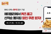 [서울타임즈뉴스 = 서연옥 기자] 제너시스BBQ 그룹(회장 윤홍근)이 오는 27일부터 10월 3일까지 에이블리에서 최대 1만원 할인 및 신제품 뿜치킹 한 마리 쿠폰 증정 혜택을 제공한다고 26일 밝혔다. 신메뉴 ‘뿜치킹’ 출시를 기념해 스타일 커머스 플랫폼 ‘에이블리’와 특별한 프로모션을 진행한다. 에이블리는 1020 잘파세대(1990년대 중반부터 2000년대 초반에 태어난 'Z세대'와 2010년 이후 출생한 'α(알파) 세대') 중심으로 높은 인기를 얻고 있는 플랫폼으로 패션, 뷰티, 라이프 등 다양한 카테고리 상품을 AI 추천 기술로 연결해주는 서비스다. 에이블리는 지난 5월, 앱·리테일 분석 서비스 ‘와이즈앱’ 기준 패션 앱 사용자 수(MAU) 1,000만명 이상을 기록하며 업계 1위를 굳히고 있다. 프로모션 기간동안 에이블리 앱 내 BBQ 이벤트 페이지에 접속하면 신제품 ‘뿜치킹’ 이름을 맞히는 퀴즈에 참여할 수 있다. 퀴즈 정답자 선착순 50만 명에게 BBQ앱에서 사용 가능한 5,000원, 6,000원, 1만원 할인 쿠폰 또는 뿜치킹 한 마리 증정 쿠폰이 랜덤으로 제공된다. 퀴즈 참여와 관계없이 이벤트 페이지에 접속만 해도 BBQ앱에서 사용 가능한