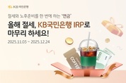 [서울타임즈뉴스 = 최남주 기자] KB국민은행(은행장 이환주)은 연말정산 시즌을 맞아 오는 12월 24일까지 ‘올해 절세, KB국민은행 IRP로 마무리 하세요!’ 이벤트를 진행한다. 이번 이벤트는 신규 가입(타기관 연금 계좌 이전 포함) 및 추가 입금한 고객을 대상으로 하며, 납입 금액에 따라 다양한 경품이 제공된다. 개인형IRP 신규 가입 고객의 경우 ▲비대면 신규 가입 ▲30만원 이상 납입 ▲디폴트옵션 등록 ▲이벤트 응모 조건 모두 충족 시, 납입 금액에 따라 최대 스타벅스 E카드 2만원권 또는 신세계상품권 2만원이 제공된다 또한, 개인형 IRP 추가 입금 등의 경우 ▲100만원 이상 입금 ▲디폴트옵션 등록 ▲이벤트 응모 조건 충족 시 스타벅스 아메리카노 TALL 1매와 탕종 파마산 치즈 베이글 세트가 증정된다. ▲1,000만원 이상 입금 ▲디폴트옵션 등록 ▲이벤트 응모 조건 충족 시 스타벅스 아메리카노 TALL 2매와 부드러운 생크림 카스텔라가 증정된다. KB국민은행 관계자는 “이번 이벤트로 많은 고객들이 연말정산에서 세액공제 혜택을 누리길 바란다”며, “앞으로도 KB국민은행은 고객의 절세뿐 아니라 안정적인 노후자산 마련을 돕기 위해 다양한 혜택과 맞춤