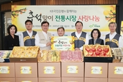 [서울타임즈뉴스 = 서연옥 기자] KB국민은행(은행장 이환주)은 1일 추석 명절을 맞아 전통시장 활성화와 소외이웃 지원을 위해 ‘2025 추석맞이 전통시장 사랑나눔’ 행사를 진행했다. 전통시장 사랑나눔 행사는 명절을 맞이해 KB국민은행의 전국 지역영업그룹이 전통시장에서 식료품을 구입하고, 해당 식료품을 지역사회 복지시설 및 어려운 이웃에게 전달하는 행사다. 2011년부터 이어온 이번 행사는 올해까지 15년간 총 156억원 상당의 식료품을 전통시장에서 구입해 23만 2천여 명의 이웃에게 전달했다. 특히 올해는 ‘대한민국 새단장 주간’에 맞춰 임직원들이 행사에 앞서 전통시장 일대에서 환경정화 활동을 펼치며 행사의 의미를 한층 높였다. 또한 지역화폐와 온누리상품권을 활용해 전통시장에서 식료품을 구입하며 전통시장 활성화와 지역경제 회복에 힘을 보탰다. 이환주 KB국민은행장 역시 서울 마포구에 위치한 망원시장을 직접 찾아 상인들을 응원하고 직접 식료품을 구매하며 따뜻한 나눔에 동참했다. 또한, 최근 증가하고 있는 전자금융사기 피해를 예방하기 위한 ‘보이스피싱 예방 캠페인’도 함께 진행했다. 전국 70여 개 전통시장에서 상인을 대상으로 보이스피싱 예방 안내장을 전달하며